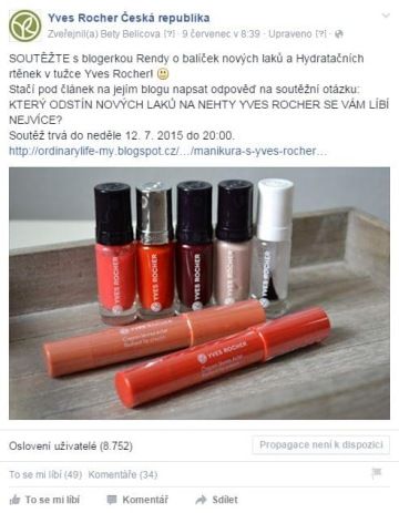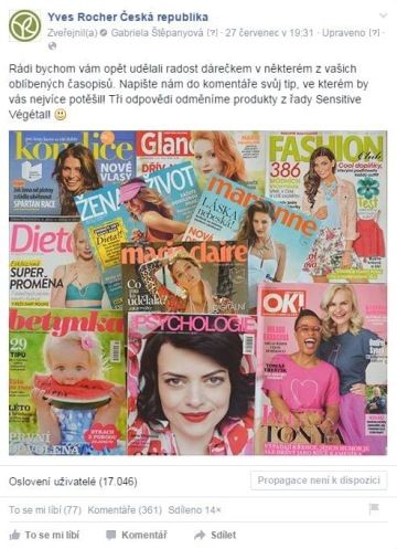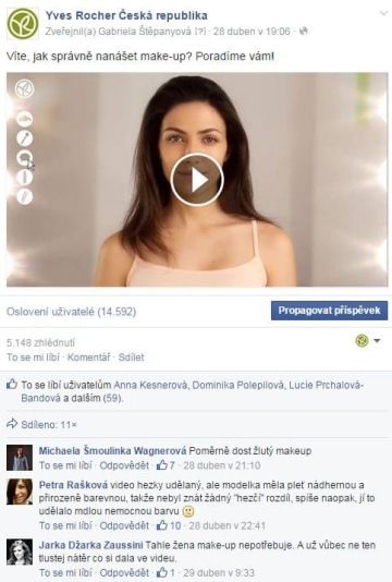 - Předmětem spolupráce byla správa facebookové stránky Yves Rocher Česká republika. Jejím prvotním záměrem bylo zvýšit povědomí o produktech Yves Rocher, posílit pozitivní vnímání značky a podpořit prodejní kanály společnosti (zejména e-shop). Sekundárním cílem pak bylo zvýšit počet fanoušků stránky a jejich aktivitu na stránce.